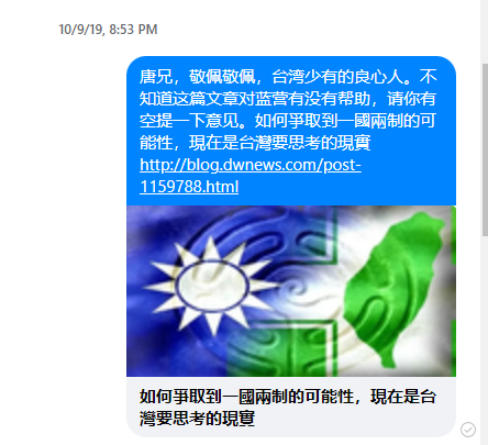 • 2019年就有人预见中国大陆正在放弃一国两制政策。从旁观者的角度这个人认为一国两制符合台湾人的中期和远期政治利益。题头图片1是这一份证据。它证明了这个人尽力向台湾人传递它的预测。它提醒台湾人要追求一国两制。可惜无论这种声音多么努力,也无法有效地传入台湾大众视野。充分显示台湾社会舆论并不十分开放,并阻碍了有利于台湾中期和长期利益的声音得不到传播。