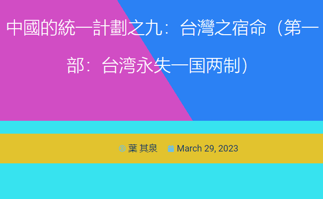 本來按計劃,台灣部分是整個中國統一計劃文章的最後一部分。原計劃在2024年2月推出。為因應台灣局勢反覆在近期成為熱點的現實,現在把這一部分提前寫出來。